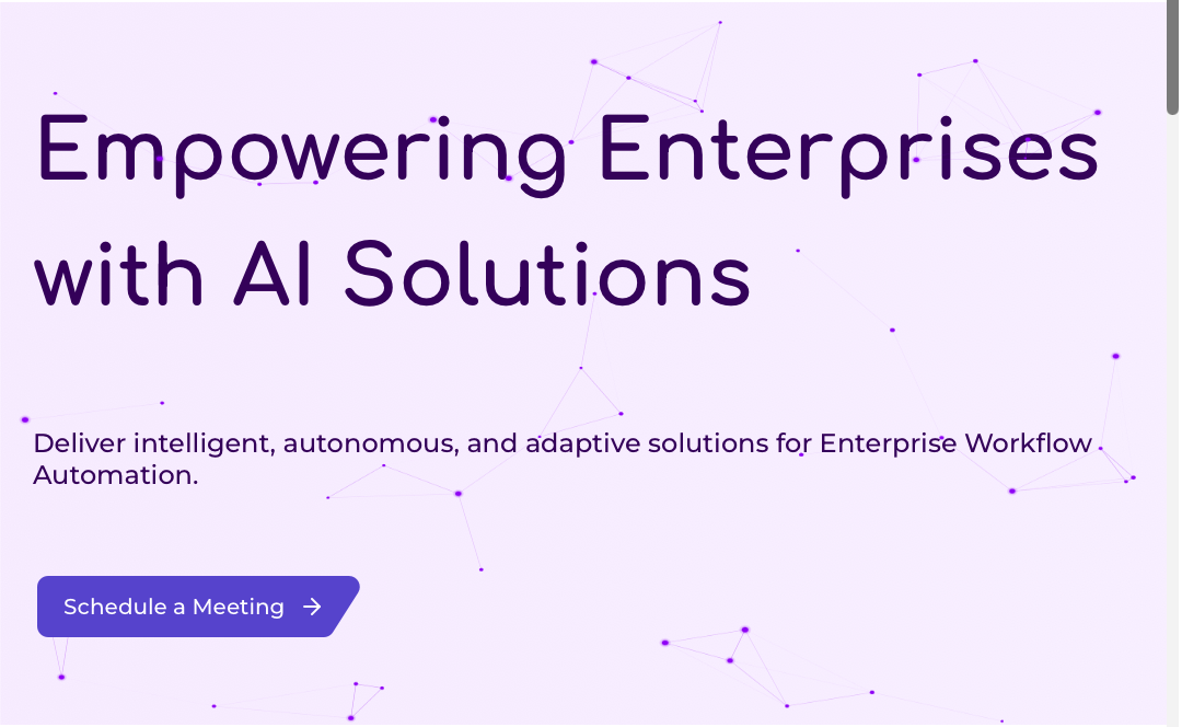 Hero section with a strong headline, a concise supporting statement, a clear call-to-action, and a dynamic animated background